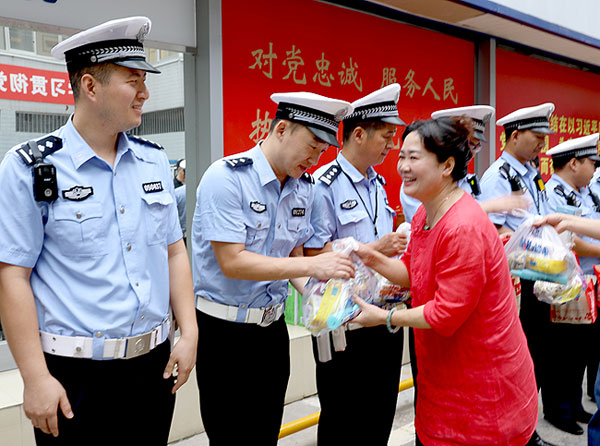 2018年7月31日上午,继“坊上人”所属各店连日慰问附近暑伏高温下为美化城市环境辛勤工作的环卫工人,并邀请他们来店就餐做客的同时,陕西省政协委员、西安市政协常委、莲湖区政协常委、西安坊上人清真餐饮有限公司总经理刘西艳女士,又带着300瓶“坊上人”古法秘制鲜花酸梅粉等慰问品,与莲湖区政协陈宝玉主席等有关领导一道,分别看望慰问了高温酷暑下坚守工作岗位的交警莲湖大队执勤交警、莲湖区旅游局回坊电瓶车队、桃园路街道办事处保洁员及城管执法队员们,送去饱含“坊上人”全体员工浓浓民族情意的祝福问候,受到热烈欢迎和广泛赞誉。