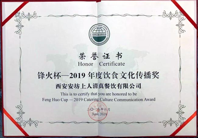 大会期间,“坊上人”总经理刘西艳女士全票当选为“世界中餐业联合会清真餐饮(食品)产业委员会执行副主席”。在6月25日晚举行的颁奖典礼上,世界中餐业联合会还特意向西安坊上人清真餐饮有限公司颁发了“2019年度饮食文化传播奖”,并授予技艺精湛的“坊上人”厨师长苏然先生“中餐厨师艺术家”殊荣,以表彰“坊上人”长期以来为中国清真饮食文化以及“一带一路”特色餐饮的传承发展做出突出贡献。
